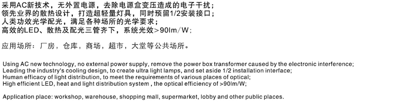 采用AC新技术,无外置电源,去除电源盒变压造成的电子干扰;领先业界的散热设计,打造超轻量灯具