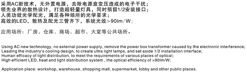 采用AC新技术,无外置电源,去除电源盒变压造成的电子干扰;领先业界的散热设计,打造超轻量灯具